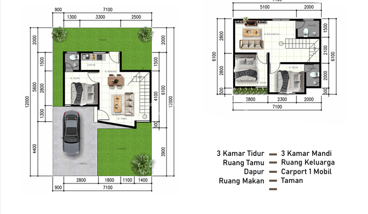 "Type 90 Arsitektur Tropis Spesifikasi Rumah: - Luas Bangunan: 90 m² - Luas Tanah: 101 m² s.d 107 m² - 3 Kamar Tidur - 3 Kamar Mandi - Ruang Tam...