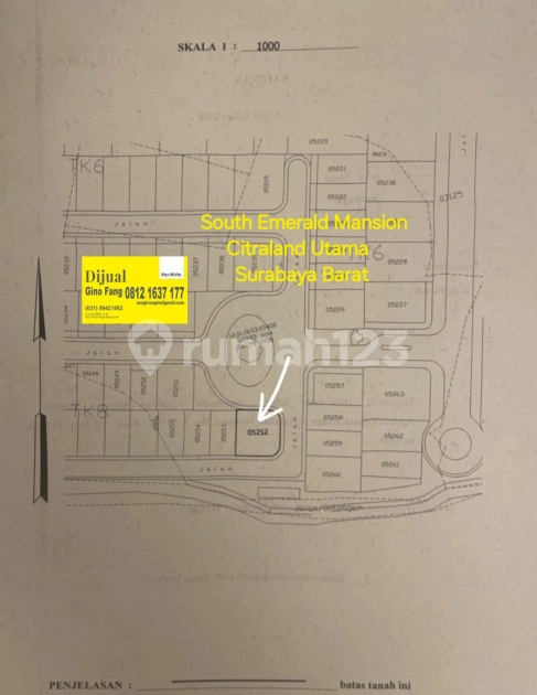 Murah Tanah Kavling South Emerald Mansion Citraland Surabaya Barat Luas tanah 169m² Dimemsi 9m x 18.8m Ppjb, HGB Murni Hadap Timur Row jalan 20 ...