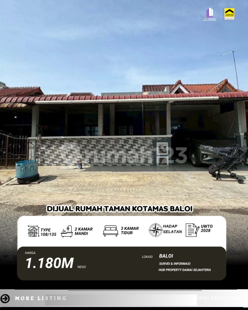 Dijual cepat rumah Taman Kota Mas Baloi Harga 1,180 miliar nego Tipe rumah 108/135m2 ( 9 x 15 ) 3 kamar tidur 2 kamar mandi UWTO 2028 Hadap selat...