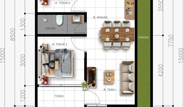 "Type 50 Japandi Style Spesifikasi Rumah: - Luas Bangunan: 50 m² - Luas Tanah: 91-119 m² - 2 Kamar Tidur - 1 Kamar Mandi - Ruang Tamu & Keluarga...