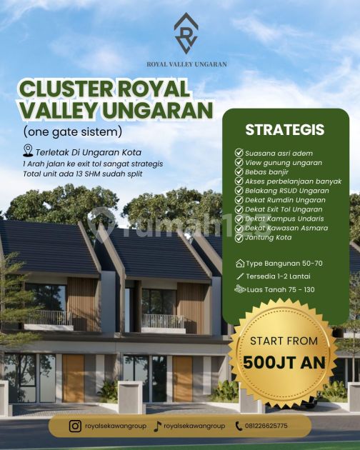 Deskripsi : Cluster Royal Valley Ungaran (one gate sistem) Terletak Di Ungaran Kota 1 Arah jalan ke exit tol sangat strategis Total unit ada 13 SHM...