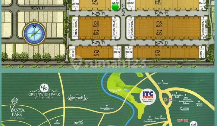 FOR SALE Kavling Hook Gandeng Cluster Whitsand Greenwich BSD LT 325m (14.77 x 22) Bentuk Kotak Hadap Utara Timur & Selatan Timur Posisi Hook (Depa...